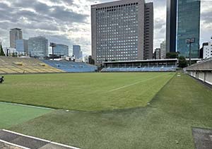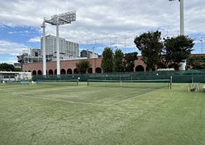 2025-09-29秩父宮ラグビー場(正面は青山通り) テニス場の向かいが神宮球場