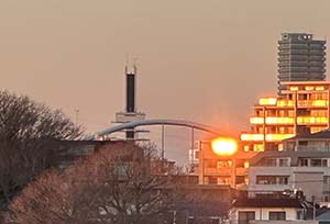 今日は午前中に歯医者さん、午後は給湯工事の業者さんの来宅と人と接触する用事が続いた。その間に当然、青空を楽しむ余裕はある。昨日、今日と快晴が続き空を見ているだけで気分転換になる。都会の景色も変化に富み見ていて飽きない。パソコンをやりながら北側の真正面に駒沢公園の一部が目に入る。オリンピック記念塔と手前の屋内球技場(独特のアーチ型の屋根)の脇のマンションが昨日の夕刻、夕日で真っ赤に染まったので今日の普通の状態と比較して下に写真を掲載する。マンションに住んでいる人は夕日を浴びながら他からこのように強烈に光って見えるとは思っていないのでないか。「脚光を浴びる」と言う言葉があるが、光の浴び方一つで他人へのアピールは大きく変わる。都会の日の当たり方は時々刻々変化して大部分は特別の光を受けないけれども様になる。何か人間社会を象徴しているようにも見えて面白い・・。
