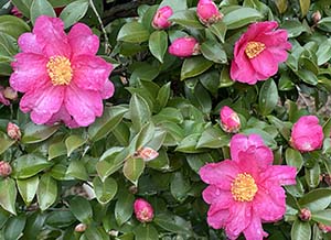 真冬の寒さが続く。少し前までは秋の紅葉を楽しんでいたけれども、気がつけばクリスマス、年末間近だ。下に掲載した写真は今日スポーツジムに行った際に、近所で撮影したもの。紅葉はすっかり終わり、葉はほとんど散ってしまった。冬になっても元気に咲くのは椿の花。特に薮椿(ヤブツバキ)は都会でもよく見かける。椿の花が散る時には花弁でなく丸ごと地上に落ちるので昔の武士は首を切られたことを連想し好まれなかったというが、寒い時期に本当に癒される。「椿落ちて きのふの雨を こぼしけり」(与謝蕪村)。写真の椿は、まさに昨晩、今朝までの雨に濡れた椿で散った花もいくつもあったが残っていたもの。「人見る如く 椿の花 円く」(岸本尚毅)