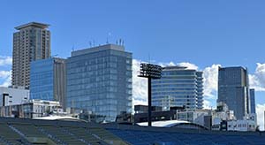 2025-12-26 テニス場から見た今の銀杏並木 秩父宮ラグビー場から見たビル群(青山通り)