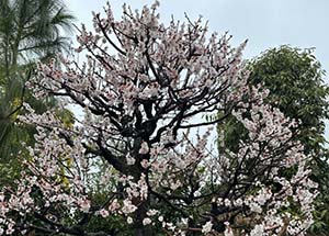 東京は朝から雨。久々の大雨で日本中が”恵みの雨”と報じられている。早朝に連絡を取り合ってテニスももちろんお休み。代わりに雨の中を傘をさして近所のスポーツジムに行った。途中の住宅街(農園)で雨に濡れた花が見事だったので写真を撮った(下に掲載)。枝垂れ梅と並んで咲いている花は梅かと思ったが"Picture This"で調べるとアプリコット(アンズ)だった。こうした花々も久しぶりの大雨で生き返ったように見えた。自然の恩恵は非常にデリケートでもある。大雨も度が過ぎれば大被害となるし暑い寒いも人間を基準に決まるものではない。人も自然と適合しなければ生き続けられない・・。 |